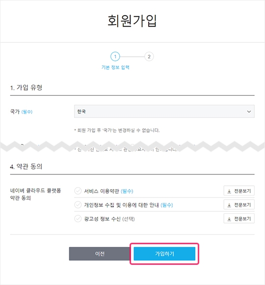 3) 모든 회원정보를 입력한 뒤 가입하기 버튼을 클릭해 주세요.