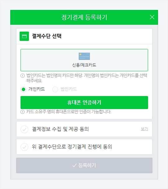 8) 원하는 결제수단을 등록해 주세요.