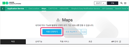 1) 서비스 > Application Service > Maps 메뉴로 이동해 주세요.