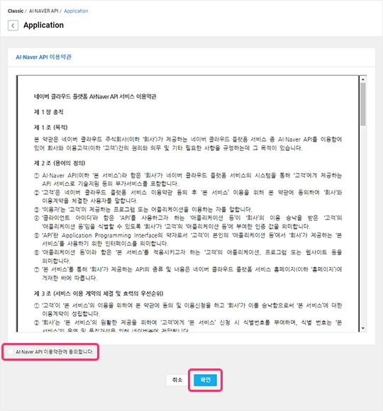 4) 이용약관 동의에 체크 후 확인 버튼을 클릭해 주세요.