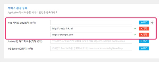 7) 서비스 환경 등록에서 Web 서비스 URL을 등록해 주세요.