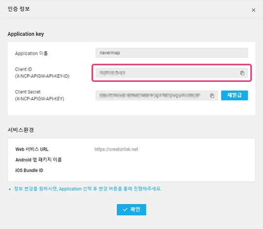 7) Client id 항목에 복사한 키값을 붙여넣어 주시면 앱 키 적용이 완료됩니다.