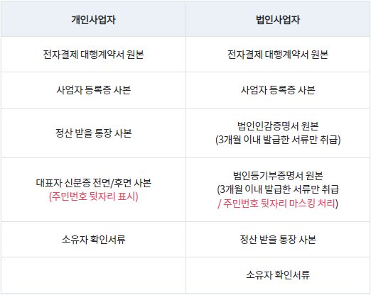 PG사 연동 신청을 하기 전에 먼저 각 PG사(KCP, 나이스페이)의 심사불가업종을 확인해주세요.