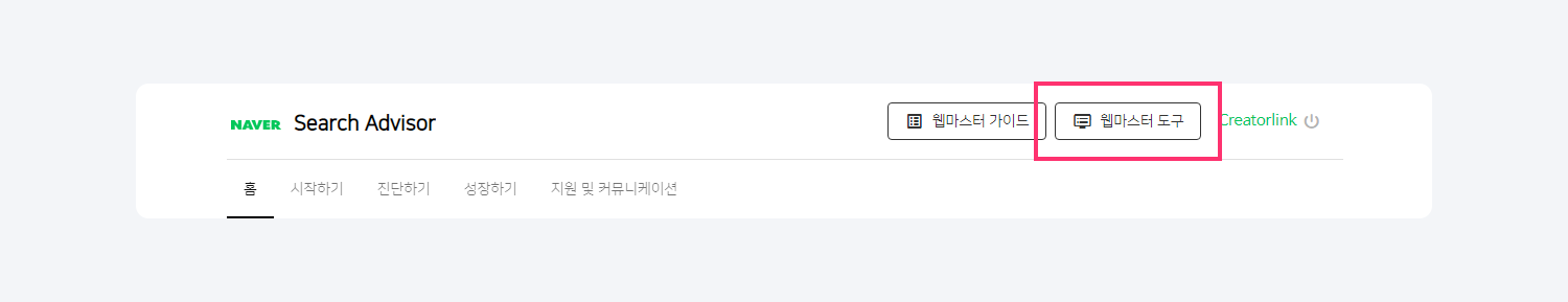 2. 우측 상단의 웹마스터도구 버튼을 클릭해 주세요.