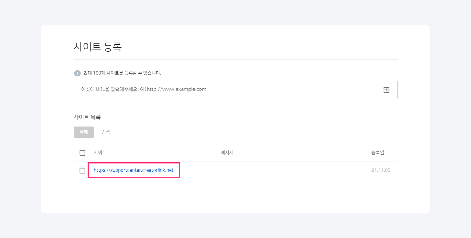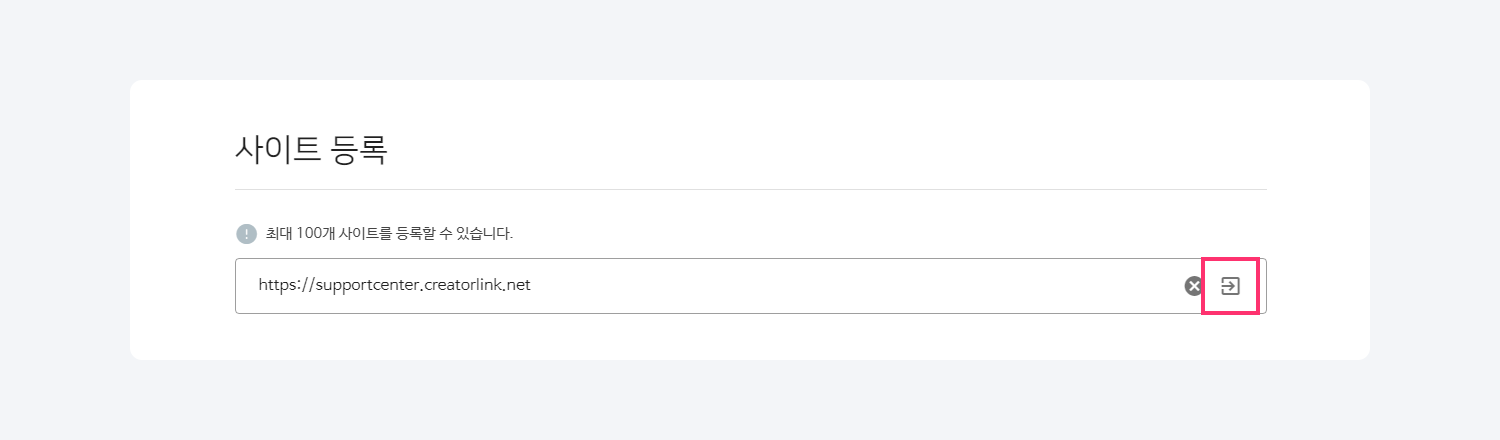 3. 사이트 등록에 사이트 주소를 입력한 후, 입력창 끝에 있는 아이콘을 클릭해 주세요.
