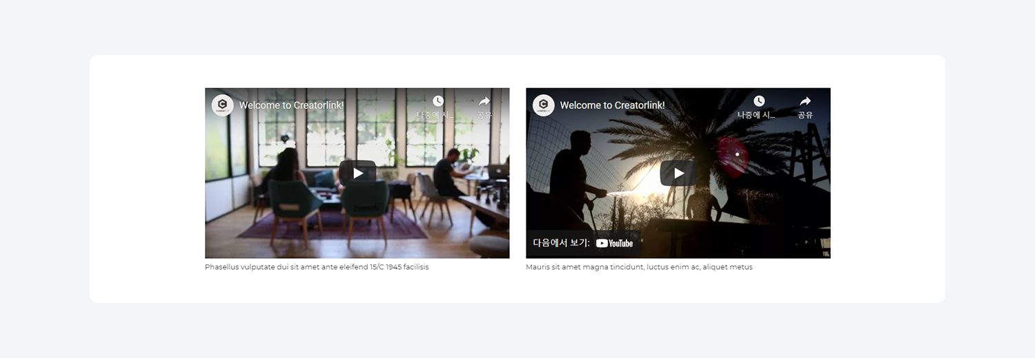 크리에이터링크는 두 가지 형태의 동영상 블럭을 제공합니다.