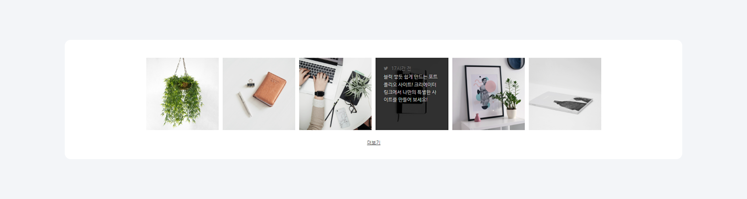 2) 피드형 : 피드형 소셜 블럭은 SNS(인스타그램, 트위터)를 연동하여 실시간 피드를 홈페이지에 반영합니다.