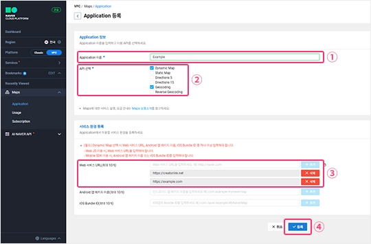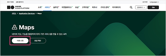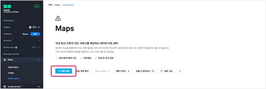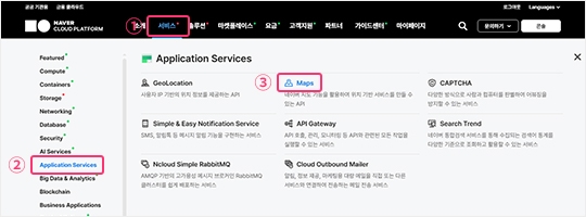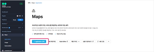 1) 서비스 > Application Service > Maps 메뉴로 이동해 주세요.