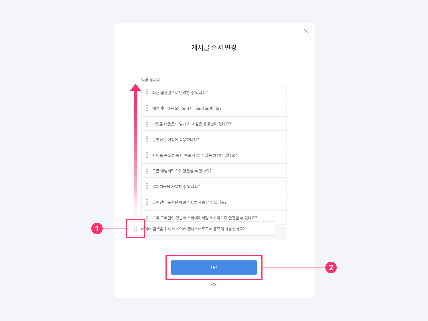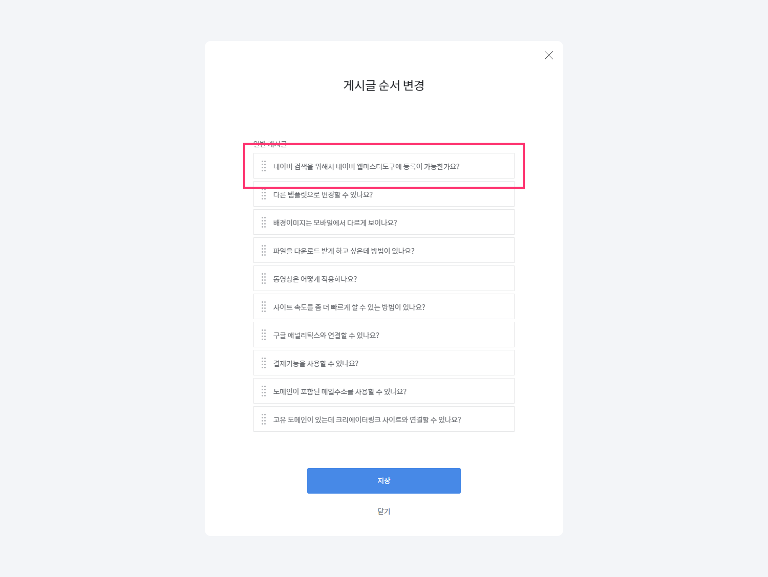3. 게시글의 위치를 원하는 대로 조정 후 저장 버튼을 클릭해 주세요.