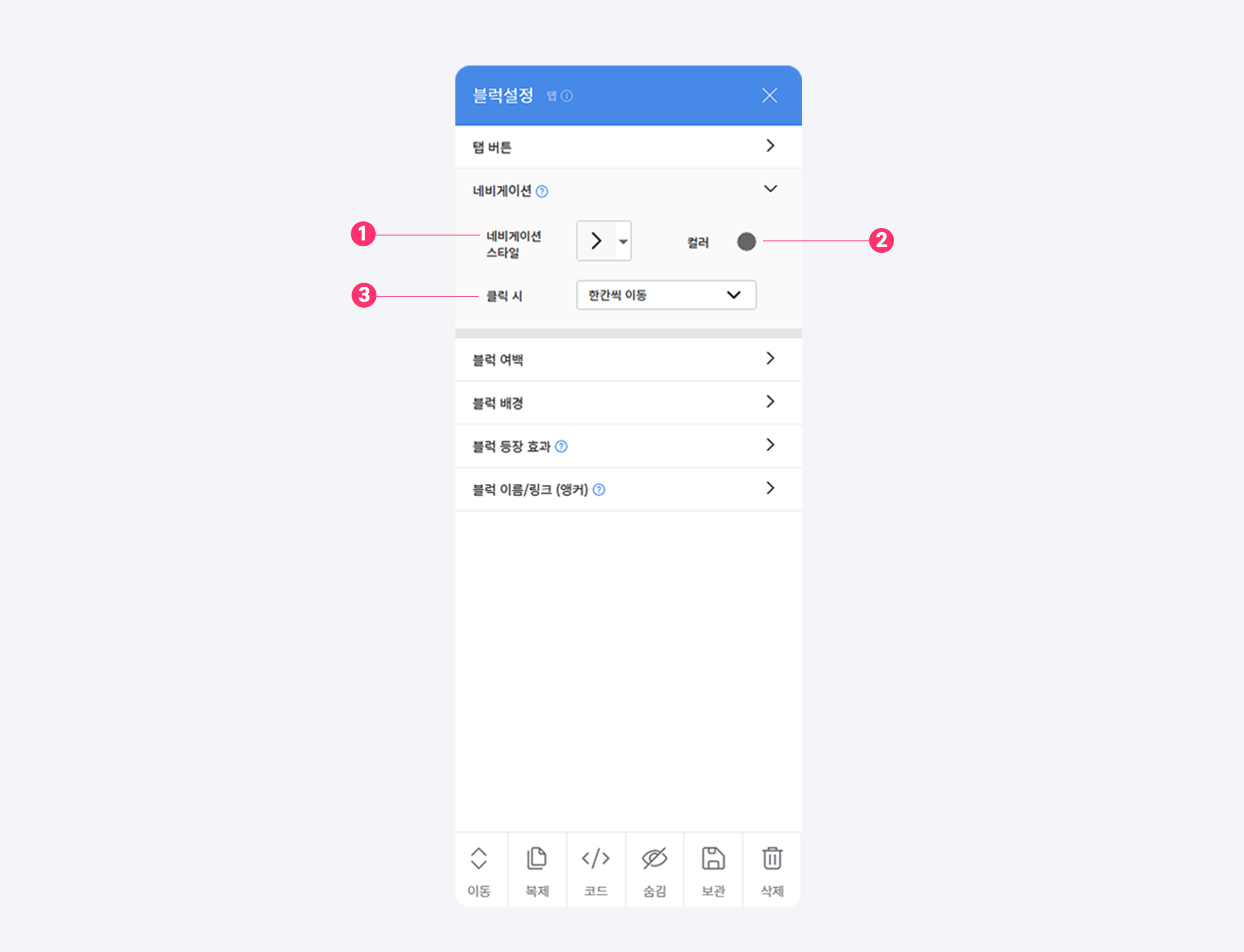 [탭 블럭 설정창 인터페이스 - 네비게이션]