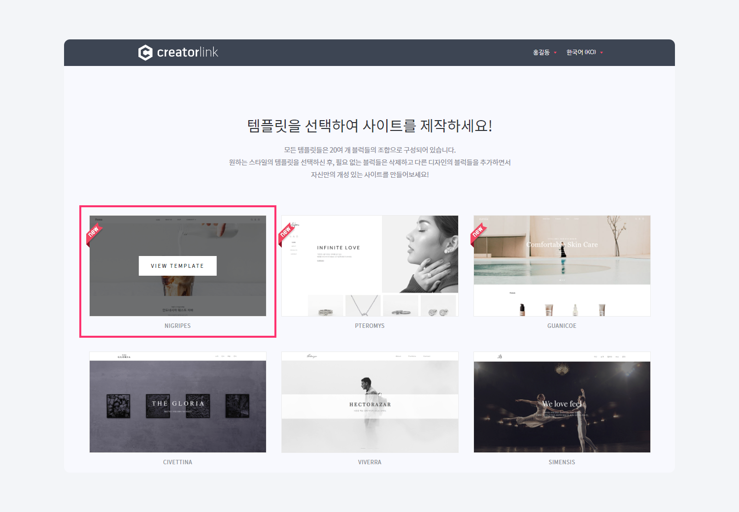 4. 템플릿 페이지에서 원하는 템플릿을 선택해 주세요.