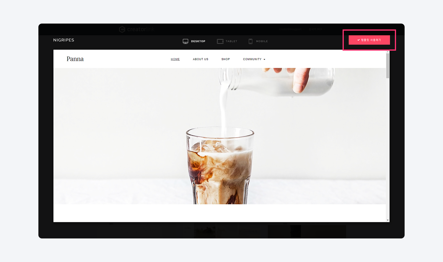 5. 템플릿 미리보기에서 템플릿 사용하기 버튼을 클릭해 주세요.