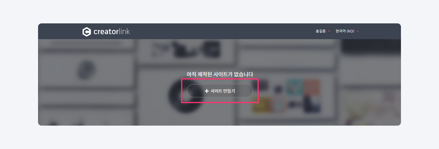 2. 상단의 사이트 만들기 버튼을 클릭해 주세요.