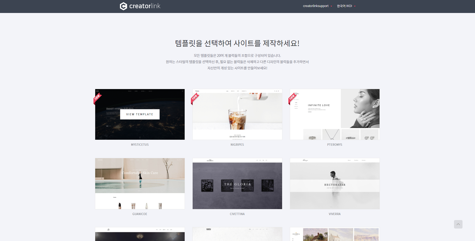템플릿은 크리에이터링크 홈페이지 하단 푸터 템플릿 메뉴에서 선택하실 수 있습니다.