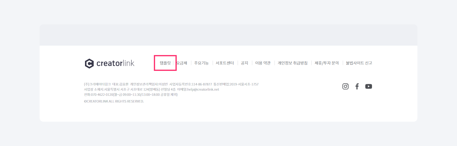 1. 크리에이터링크 홈페이지 최하단 푸터의 템플릿 메뉴를 클릭해 주세요.