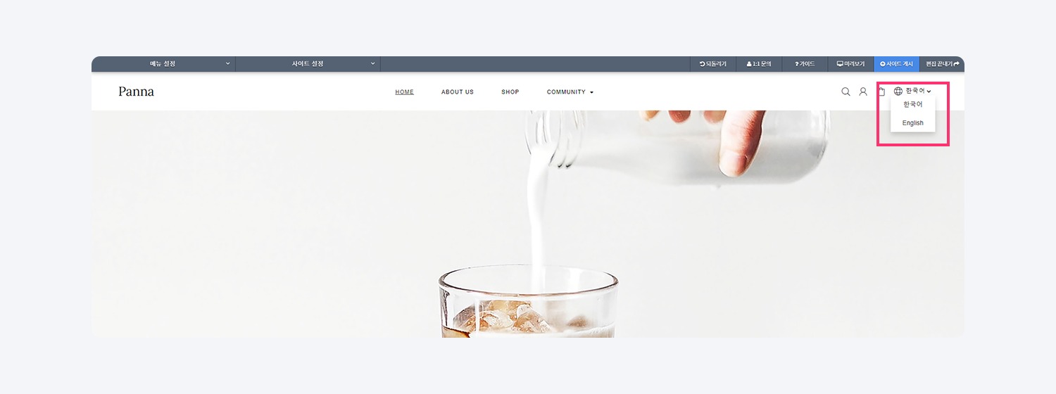 6. 사이트 편집에 들어가서 다국어 아이콘 활성화 여부를 확인해 주세요.
