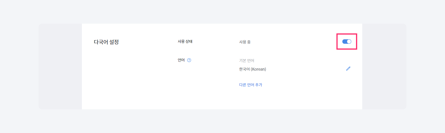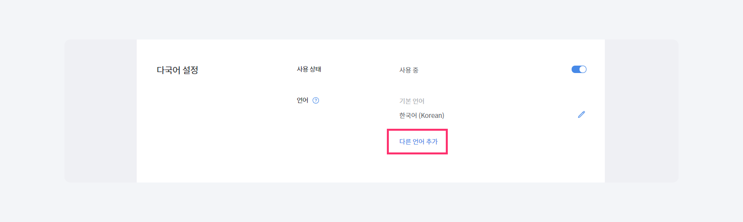다국어 설정 기능은 사이트에 유료 요금제를 적용하면 이용할 수 있습니다. 다국어 설정 기능은 동일한 주소로 여러 언어의 홈페이지를 이용할 수 있는 기능입니다.